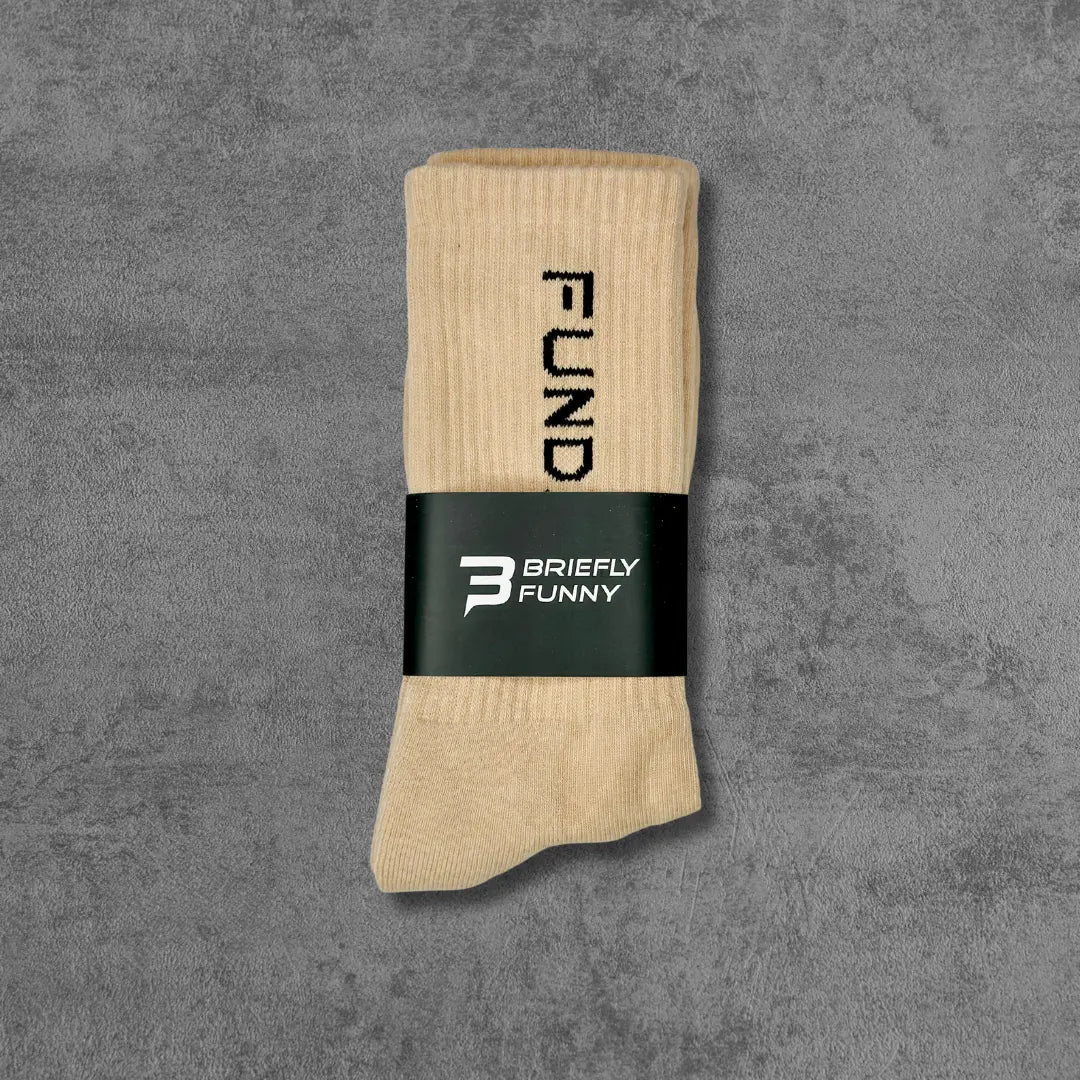 Elevate your essentials with the Sunday Funday Tan Crew Socks by Briefly Funny — a clean, neutral staple designed with personality and performance in mind. These premium funny crew socks combine subtle streetwear style with all-day comfort, making them perfect for everything from relaxed weekends to daily wear.